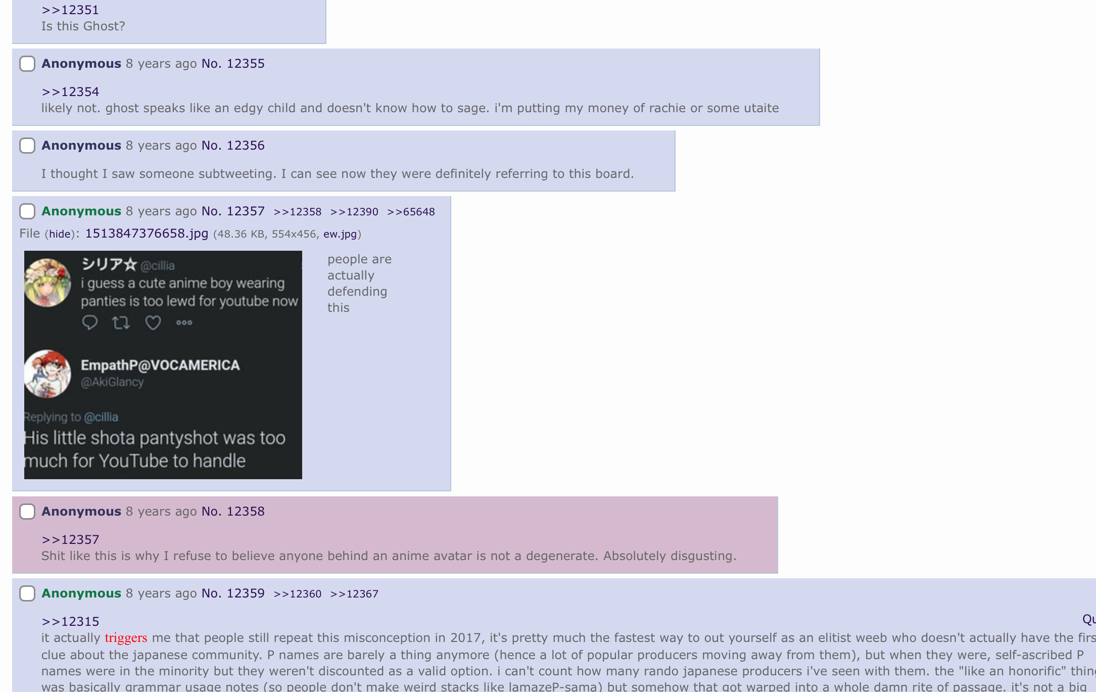 you are crying about anonymous posts from eight years ago